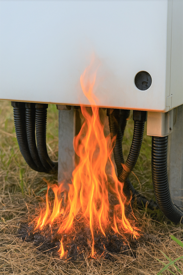 しかし、すでに稼働している発電所に全面シートを敷くことは大きなコストがかかります。そこで私たちは、まず 火災リスクの高いパワーコンディショナー等の下だけでも難燃シートを敷くという、現実的で効果的な対策として「難燃くん」を企画しました。